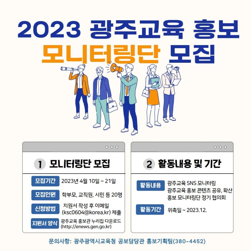 [°ø°£´º½º = ±è¼ö±Ù±âÀÚ] ±¤Áֽñ³À°Ã»ÀÌ 10~21ÀÏ Çкθð, ½Ã¹ÎÀ» ´ë»óÀ¸·Î ¡®±¤ÁÖ±³À° È«º¸ ¸ð´ÏÅ͸µ´Ü¡¯À» ¸ðÁýÇÑ´Ù.