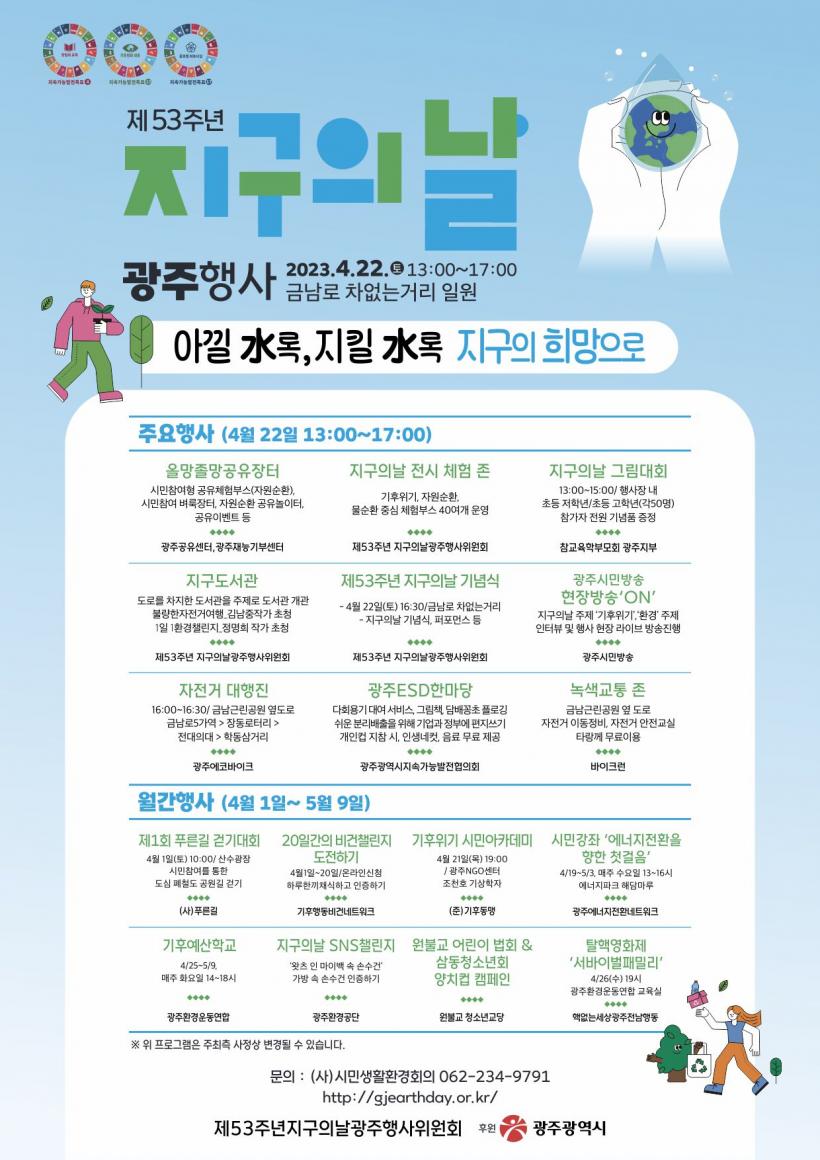 ¶Ç, 4¿ù 1ÀϺÎÅÍ 5¿ù 9ÀϱîÁö ±¤ÁÖ °÷°÷¿¡¼ °¢ ±â°ü¡¤´Üü°¡ ÃßÁøÇÏ´Â Áö±¸ÀÇ ³¯ ±â³äÇà»çµµ ´Ùä·Ó°Ô ¿¸®°í ÀÖ´Ù.