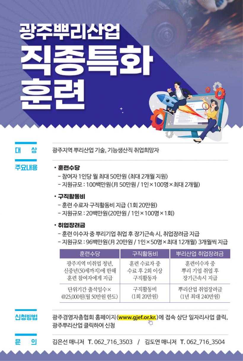 ¡®±¤ÁÖÁö¿ª »Ñ¸®»ê¾÷ ±¸Àγ °³¼±»ç¾÷¡¯¿¡ Âü¿©¸¦ Èñ¸ÁÇÏ´Â »Ñ¸®±â¾÷°ú Âü¿©ÀÚ´Â 5¿ù 2ÀϺÎÅÍ ±¤Áְ濵ÀÚÃÑÇùȸ ȨÆäÀÌÁö¿¡¼ ½Åû °¡´ÉÇÏ´Ù.