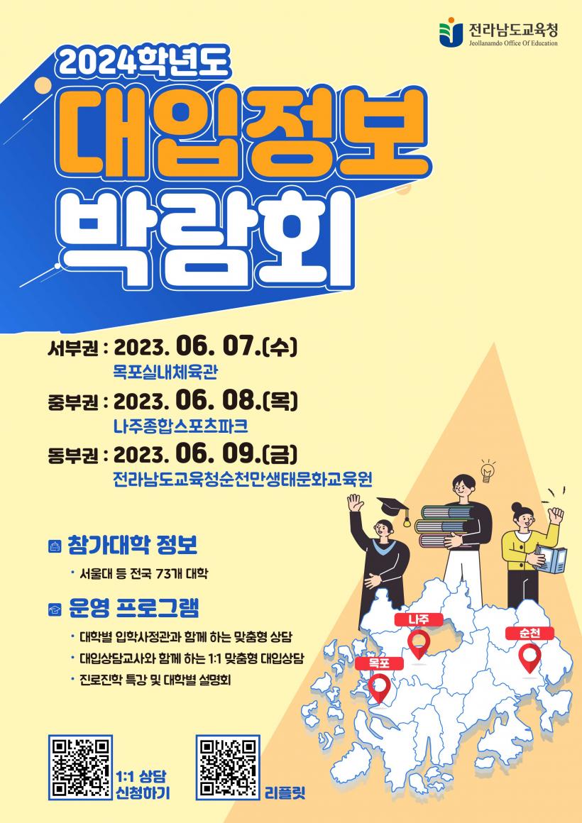 [°ø°£´º½º = ±è¼ö±Ù±âÀÚ] Àü¶ó³²µµ±³À°Ã»(±³À°°¨ ±è´ëÁß)ÀÌ ¿À´Â 7ÀÏ(¼ö) ¸ñÆ÷½Ç³»Ã¼À°°ü, 8ÀÏ(¸ñ) ³ªÁÖÁ¾ÇÕ½ºÆ÷Ã÷ÆÄÅ©, 9ÀÏ(±Ý) Àü¶ó³²µµ±³À°Ã»¼øÃµ¸¸»ýŹ®È±³À°¿ø¿¡¼ 2024Çг⵵ ´ëÀÔÁ¤º¸ ¹Ú¶÷ȸ¸¦ °³ÃÖÇÑ´Ù.