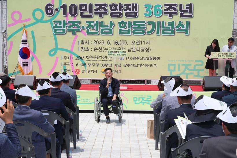 [°ø°£´º½º = ±è¼ö±Ù±âÀÚ] Àü¶ó³²µµÀÇȸ ¼µ¿¿í ÀÇÀåÀº Áö³ 10ÀÏ ¼øÃµ½Ã ¼øÃµºÎÀ¾¼º ³²¹®ÅÍ ±¤Àå¿¡¼ ¿¸° Á¦36ÁÖ³â 6¡¤10¹ÎÁÖÇ×Àï ±â³ä½Ä¿¡ Âü¼®Çß´Ù.