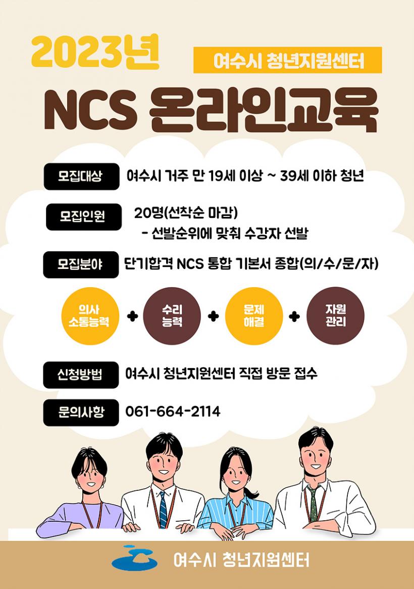 [°ø°£´º½º = ±è¿ëÁø±âÀÚ] ¿©¼ö½Ã(½ÃÀå Á¤±â¸í)´Â °ø°ø±â°ü Ãë¾÷À» ÁغñÇϴ û³âµéÀ» ´ë»óÀ¸·Î NCS(±¹°¡Á÷¹«´É·ÂÇ¥ÁØ) ¿Â¶óÀα³À° Âü°¡ÀÚ¸¦ ¿À´Â 16ÀϱîÁö ¼±Âø¼ø ¸ðÁýÇÑ´Ù.