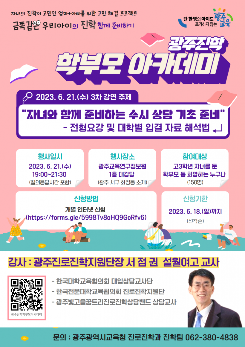 ÇÑÆí ¡®±¤ÁÖÁøÇÐ ÇÐºÎ¸ð ¾ÆÄ«µ¥¹Ì Ư°¡¯Àº ÃßÈÄ ½Ã±â¿¡ ¸Â´Â ÀûÇÕÇÑ ÁÖÁ¦·Î ÆîÃÄÁú ¿¹Á¤ÀÌ´Ù. À̾îÁö´Â °ÀÇ´Â ¡ãÇб³¿¡¼ ³¡³»´Â ÇлýºÎÁ¾ÇÕÀüÇü Áغñ(9¿ù) ¡ãÇлýºÎ±³°úÀüÇüÀ» À§ÇÑ ´ëÇÐ ¾îµð°¡ Ȱ¿ë¹ý(10¿ù) ¡ãÇлýºÎÁ¾ÇÕÀüÇüÀ» À§ÇÑ °ú¸ñ ¼±Åðú ´ëÇÐÀÇ Æò°¡(12¿ù) ¼ø¼·Î ¿î¿µÇÑ´Ù.