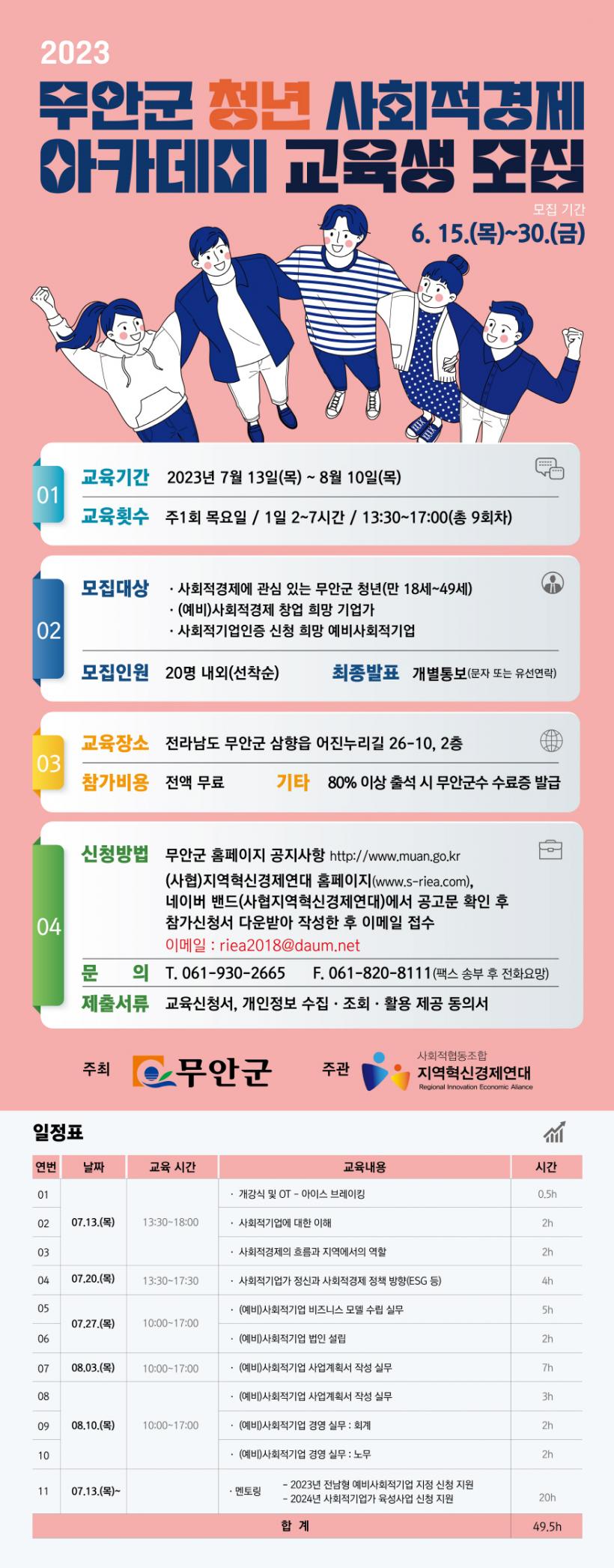 [°ø°£´º½º = ±è¿ëÁø±âÀÚ] Àü³² ¹«¾È±º(±º¼ö ±è»ê)Àº û³â »çȸÀû°æÁ¦ ±â¾÷ À°¼ºÀ» À§ÇÑ ¾ÆÄ«µ¥¹Ì ±³À°»ýÀ» ¿À´Â 6¿ù 30ÀϱîÁö ¸ðÁýÇÑ´Ù°í ¹àÇû´Ù.
