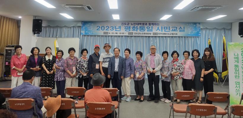 [°ø°£´º½º = Çѵ¿¼ø±âÀÚ] ¹ÎÁÖÆòÈÅëÀÏÀÚ¹®È¸ÀÇ Áøµµ±ºÇùÀÇȸ(ȸÀå °û±ÔÇö)¿¡¼´Â Áøµµ±º ³ëÀδëÇлý 150¿©¸íÀ» ´ë»óÀ¸·Î 2023³â ÆòÈÅëÀÏ ½Ã¹Î±³½ÇÀ» Áö³ 6¿ù 22ÀÏ(¸ñ) Áøµµ±º ³ëÀÎȸ °´ç¿¡ °³ÃÖÇÏ¿´´Ù.
