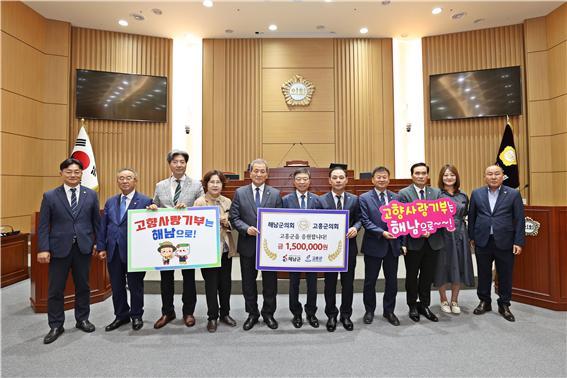 [°ø°£´º½º = Çѵ¿¼ø±âÀÚ] ÇØ³²±ºÀÇȸ(±è¼®¼ø ÀÇÀå)¿Í °íÈﱺÀÇȸ(ÀÌÀçÇÐ ÀÇÀå)°¡ Áö¹æÀÇȸ °£ ±³·ù Ȱ¼ºÈ¿Í Áö¿ª »ó»ý¹ßÀüÀ» ´ÙÁüÇÏ¸ç °íÇâ»ç¶û±âºÎ±ÝÀ» »óÈ£ ±âŹÇß´Ù.