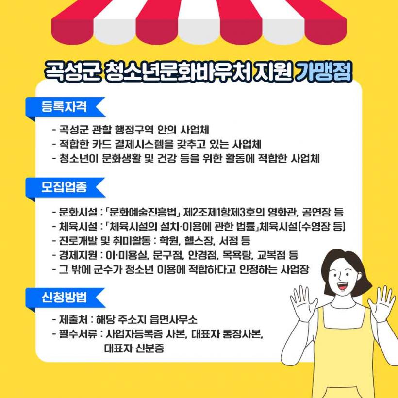 °¡¸Í ½ÅûÀº À¾¸é»ç¹«¼Ò¿¡ ÇÊ¿ä ¼·ù¸¦ ÁöÂüÇÏ¿© ½ÅûÇÒ ¼ö ÀÖ°í, °¡¸ÍÁ¡À¸·Î µî·ÏµÈ ¾÷ü´Â °î¼º±º û¼Ò³â¹®È¹Ù¿ìó °¡¸ÍÁ¡ ½ºÆ¼Ä¿°¡ ±³ºÎµÈ´Ù.