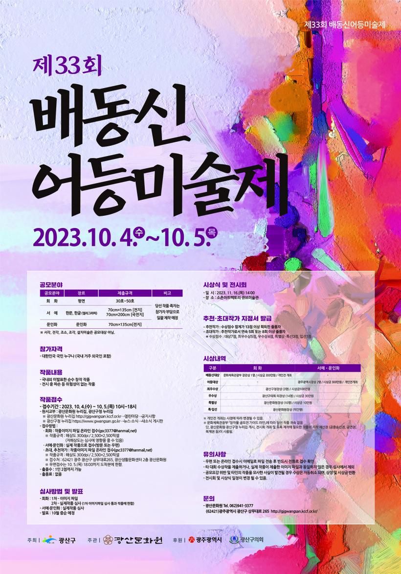 °ø¸ð´Â ȸÈ, ¼¿¹, ¹®ÀÎÈ µî ÃÑ ¼¼ ºÐ¾ß·Î ³ª´² ÁøÇàÇÑ´Ù. ¿Ü±¹ÀÎÀ» Æ÷ÇÔÇÑ ´ëÇѹα¹¿¡ °ÅÁÖÇÏ´Â »ç¶÷ ´©±¸³ª Âü¿©ÇÒ ¼ö ÀÖ´Ù. Ãâǰ¿ø¼´Â ±¤»ê¹®È¿ø ´©¸®Áý°ú ±¤»ê±¸ ´©¸®Áý¿¡¼ ³»·Á¹ÞÀ» ¼ö ÀÖ´Ù.